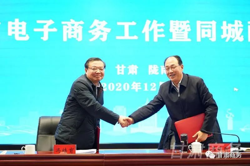 会议期间,省商务厅与中国石化销售股份有限公司甘肃石油分公司签订了《关于在甘肃省实施同城配送打造省级电商平台的战略合作框架协议》。陇南市电子商务发展局、成县商务局介绍了“同城配送”经验,甘州区商务局、兰州新区紫金大厨房介绍了中央厨房经验,代表实地观摩了陇南市电商产业服务中心、武都区同城配送运营中心、陇南市东盛易畅供应链仓配中心。